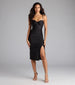 Create a flirty chic look for your next cocktail party in this smooth knit midi dress with a sweetheart neckline. high-cut front slit. and bodycon silhouette to flaunt your curves.