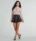 You'll look so chic and flirty in this sleek faux leather skater skort! Designed with smooth faux leather fabric for an edgy vibe. the skort features a fitted high waist with a mini-length overlay with the cutest skater silhouette over fitted shorts. The faux wrap-front design adds a stylish flair. Complete your outfit with a lace top for a sweet and sultry look!
