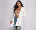 Yes girl. showcase a chic and stylish 'fit in this tie front belted trench! It features long fitted sleeves with a deep V neckline. a complete zip front. and a tie front belt to cinch your waist. Pair this adorable trench with black skinny jeans and clear mules for an of the moment look.