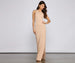 Basic yet oh-so-chic. this sleeveless maxi dress will be your new go-to. It features a crew neckline. tank shoulder straps. a sultry thigh-high side slit. and a floor-length fitted silhouette. Style this dress with sleek hoop earrings.