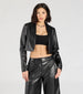 Layer on a chic vibe with this sleek faux leather cropped blazer. The cropped relaxed silhouette will give your 'fit that effortlessly cool look.