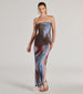 Serve chic vibes in this airy-lined mesh maxi dress designed with a multi-colored abstract print for a bold allure. It features a strapless straight-across neckline. a high-cut side slit. and a long bodycon silhouette to showcase your stunning curves.