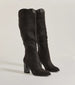 Chic and of the moment. these faux suede boots have a knee-high design perfect for pairing with mini and midi dresses. They feature a pointed toe. a partial inner zipper closure. and a sturdy stacked block heel.