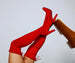Show off your chic style with boots that make each step a stunning one! The boots feature an over-the-knee fit. tie-back ties. an almond toe. and a block heel. The boots are composed of a faux suede material. Complete look with a mini skirt and crop top.Â