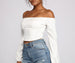 Keep it chic with a crop top that is totally trend-worthy! The top features an elastic off-the-shoulder neckline. long sleeves with an elastic cuff. corset-like seams on the bodice. and a cropped hem. The top is composed of stretchy lightweight woven fabric that offers a form-hugging fit. Complete your look with a high waist skirt.