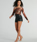 You'll be a vision of iconic chic style in this abstract printed mesh top! The stretchy sheer mesh fabric is accented with a neutral abstract print to amp up your going-out look. The top is shaped with a crew neckline and features long fitted sleeves. a ruched side seam with an adjustable drawstring to customize the fit. and an asymmetric mid-length hem for a trendy silhouette. Pair this form-hugging top with faux leather shorts and clear heels for a rooftop bar!
