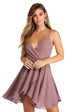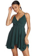 Go with the flow in a skater dress that is party-ready! The dress features a flattering wrap v-neckline. adjustable spaghetti straps for a customized fit. and a high waist fit that leads to a flowy layered skater skirt that beautifully cascades silhouette. Complete your brunch-ready look with a dainty necklace and clear heels.Â