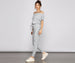 Chill out in a casual catsuit that is perf for keeping it lowkey. The catsuit features an off-the-shoulder boat neckline. short sleeves. a tie waist belt. and a skinny leg fit. The catsuit is composed of a knit fabric that offers a form-hugging fit with a moderate stretch. Complete look with sneakers and a top knot for an effortlessly cute look.