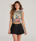 Hit the city streets looking sensational in this mini skort! It features a high-rise waist with dual buckle accents for a trendy edge and a sassy pleated mini-length hem on twill denim fabric. Complete the look in a crop jacket and sneakers!