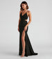 Elegant and sleek. Clarice brings the charm to your formal night! She stuns in a sleeveless. plunge v-neckline with sleek bungee spaghetti straps. princess seams along her fitted bodice with waist cutouts. and a revealing open back with lattice strap detail. Her form-fitting. a-line silhouette offers a show of leg in the sexy front high-cut slit along the floor-length hem. The special occasion dress is composed of a crepe-knit lined fabric with a moderate stretch. Complete your dressy look in an elegant choker and statement earrings.
