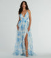 Clarissa V-Neck Rose Floral A-Line Formal Gown