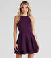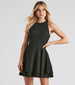 Hey beauty! This classic skater dress will be your new go-to LBD. It features a sleeveless high crew neckline. dual back button closures followed by a keyhole cutout. a high waist. and a flowy double layered skater skirt giving a fit and flare silhouette. Style this dress with dainty earrings and block heels.