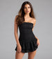 Classic and cute. this polka dot knit romper will be a summertime staple. Designed with a strapless neckline. drop waist. and tiered ruffled overlay. pair with strappy mules.