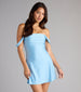 This satin mini dress will be your favorite for celebrations. events. and date nights! Sleek and smooth satin shapes this off-the-shoulder dress. which features a flattering A-line silhouette perfect for styling with heels.