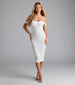 Classy Perfection Off-The-Shoulder Pearl Midi Dress