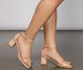 These square toe block heels will clearly keep you on-trend. They feature an open square toe. a clear toe strap. a thin adjustable ankle strap. and a low block heel. Complete the look with a layered charm necklace.