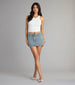 Serving throwback prep with a spicy upgrade. This denim houndstooth mini skirt brings the drama with a statement belt and a mini silhouette made to steal glances.