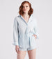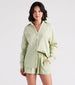 The perfect linen top and shorts set for your drive up the coast or beach cottage vacay! The oversized top features long sleeves with button cuffs. a collar neckline. a front pocket. and a button-down front. The matching shorts feature a smocked elastic high-rise waist. tie accent. side pockets. and a short-length hem. Complete the look in trendy sandals.