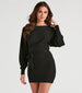 Your new classic sweater dress to embrace the cold in style! It features comfy dolman long sleeves. an off-the-shoulder neckline. and a belted waist that accentuates your curves along the short hem. Complete the look in knee-high boots for a stylish coffee run.