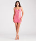 Steal the show and possibly some hearts in the striking Collen sequin mini party dress to make your radiant entrance! She features a sleeveless V-wired sweetheart neckline. sleek bungee spaghetti straps. a flattering bodycon silhouette. and a mini-length hem. The party dress is designed with a light-catching sequin striped pattern on mesh fabric and includes a stretchy knit lining. Complete the look in glam rhinestone earrings with the sequin mini dress for clubbing in Vegas or a birthday!