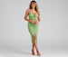 Create a stunning impression with a formal bodycon that is the perfect choice for your cocktail affair! Colette features a sleeveless wired sweetheart neckline. ruching throughout to enhance curves. a sexy cutout at the midriff for a hint of skin. and a midi-length silhouette accented with a high center slit. The dress is composed of a lined smooth knit fabric that offers a form hugging fit with a moderate stretch. Complete look with a sphere clutch and rhinestone earrings.