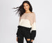Contrasting neutral tones and cozy knits are what its all about this season! This sweater will keep you on trend.