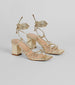 Dare to wear these metallic block heels and turn heads with every step! Featuring a square toe. strappy foot straps. a block heel. and lace-up ankle straps to help you make a statement. Style the block heels with a long sleeve midi dress for a party or date night!