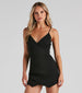 Cause a commotion when you walk in looking so-chic in this crepe skort romper featuring a sleeveless surplice V-neckline. spaghetti straps. and a form-fitting silhouette on an envelope style hem. Complete the look in rhinestone strappy heels for a dressy party.