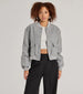 Give off that cool girl energy in this faux wool bomber jacket featuring long sleeves. a snap button-up front. and the perfect relaxed fit to layer. Style with a basic top and trouser pants!