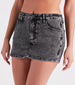 Be a cool sensation in this denim skort that brings those throwback vibes! It features a flattering high-rise waist. form-hugging fit. and a mini-length hem with a front skirt overlay. The skort is composed of acid-wash denim fabric with minimal stretch. Complete the look in a graphic tee.