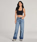 These denim jeans feature a trendy high-rise waist and wide-leg silhouette with a cuffed hem. Perfect for styling with a basic top for any occasion.