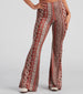 Effortlessly cool vibes all around! Style these flare pants for the perf desert festival fit. They feature a high-rise elasticized waist. form-fitting silhouette. and a flared hem on paisley border print knit fabric. Complete the look in a basic crop cami.Â