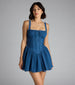 From brunch dates to fun at the fair. she always eats. This skater denim mini dress serves flirty and fierce with a corset bodice and sweet bust tie that gives major retro babe energy.