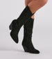 Give off total country diva vibes in these sparkly rhinestone cowboy boots that were made for all eyes on you. They feature a below-the-knee height. a pointed toe. a stacked block heel. a partial inner zipper closure. and all-over rhinestone embellishments. Style these cowboy boots with sleek hoop earrings for a bachelorette weekend!