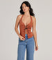 Country Girlie Halter Lace-Up Faux Suede Crop Top