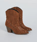 Giddy up and show off that country style in these trendy faux suede western booties! They feature an above-the-ankle height. a pointed toe. a stacked block heel. and western-style stitching with sleek studded accents. Pair these boots with a denim jacket and hoop earrings for a concert!