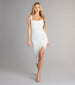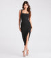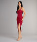 Get ready to strike a pose in the dazzling Courtney formal glitter dress at rehearsal dinners. weddings. or dressy birthdays! She features a sleeveless square neckline. tank shoulder straps. a form-hugging silhouette. and a side pleated seam that creates the chic wrap hem with a flirty slit. The formal dress is composed of a crepe glitter knit fabric with a moderate stretch. Complete the look with statement fringe earrings.