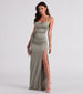 If you love a simple yet stunning look. the Courtney satin formal dress is the style for you. She features a sleeveless cowl neckline. spaghetti straps that lead to an eye-catching cross-back design. a thin strap with a tie-front design at the waist. a hip-hugging fit that leads to a floor-length A-line silhouette. and an alluring thigh-high side slit. The smooth satin-knit fabric offers a moderate stretch. Complete the outfit with clear heels for a fancy party.