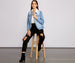 Layer up. bby! This denim jacket is perfect to chase those winter blues away. The jacket features a collared neckline. long sleeves. multi snap button front closure. two chest pockets. side pockets. soft to the touch sherpa hood. and a cozy sherpa knit lining. The jacket features a relaxed fit with minimal stretch. Style with a bodysuit and skinny leg jeans.