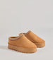 Step into these cozy faux suede platform slippers with a trendy geometric trim and a closed almond toe to help keep your feet toasty. Pair with flare leggings.