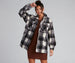 Bundle up in the plaid sherpa jacket. It features button cuffed long sleeves. collar neckline. a four-pocket design. a button-down front. and an oversized fit. The cozy sherpa fabric offers a minimal stretch. Complete your look with booties.