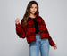 Channel those cozy vibes with a shacket that is perf to create those fab layers this season! The shacket features a plaid print. a collared neckline. a multi-button down front. two chest pockets. long sleeves. and a cropped hem. The jacket is composed of a woven fabric that offers a relaxed fit. Complete look with a bodysuit and jeans.