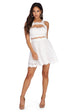 Showcase your stunning beauty in this crochet lace skater dress! It features a fresh ivory hue. a sleeveless bodice. tank-like shoulder straps. a flattering top cut out followed by a lined bust and a mesh inset at the waist. a back zipper closure. a high waist seam. and a flowy skater skirt. Dress is composed of a combination crochet and unlined mesh fabric that offers a form hugging fit with minimal stretch.