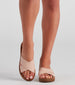 If these sandals have crossed your mind. it's definitely a sign that you want them! They feature an almond toe. criss-cross straps. and a comfortable footbed. Complete the look in a casual jumpsuit for a beach brunch.
