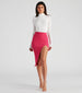 They'll all be crushing on you in this cute and trendy midi skirt! It features a high-rise waist. a midi-length hem with a high side slit. and a form-hugging fit. The ribbed knit fabric offers plenty of stretch. Style with your fave crop top and mules.