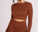 Cuddle up for a movie marathon in this cozy crop top! It features a crew neckline. long fitted sleeves. a cropped. form-hugging fit. and ribbed hems. Pair this top with some fuzzy faux fur slippers for the perfect loungewear look.