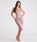 Cue the charm this season in this effortless floral midi dress - a perfect option for wedding guests. rehearsal dinners. or cocktail hour! It features a sleeveless square neck. wide shoulder straps. a bodycon silhouette. and a back slit accent. The dress is composed of a blossoming floral pattern on mesh fabric with a stretchy knit lining. Complete the look with a chic bolero and pumps!