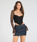 A lace corset top that's a total mood! Collect compliments everywhere you go in this sultry top with an open back and waist-snatching bodice that flaunts your figure.