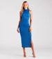 Bring the allure to your look in this curve-flaunter maxi dress perfect for a dinner out with friends or date night! It features a sleeveless mock neck. bodycon silhouette. and side slit accent. and is crafted from smooth knit fabric with lining. Complete the look with a cute crop jacket.