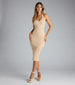 Curve Avenue Halter V-Neck Bodycon Midi Dress